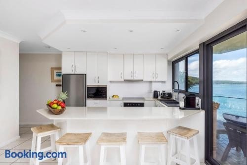 Set in Soldiers Point in the New South Wales region, Lanimer Spectacular Waterfront has a patio and sea views. This beachfront property offers access to a balcony, free private parking and free WiFi. The property is non-smoking and is located 1. License number: PID-STRA-512