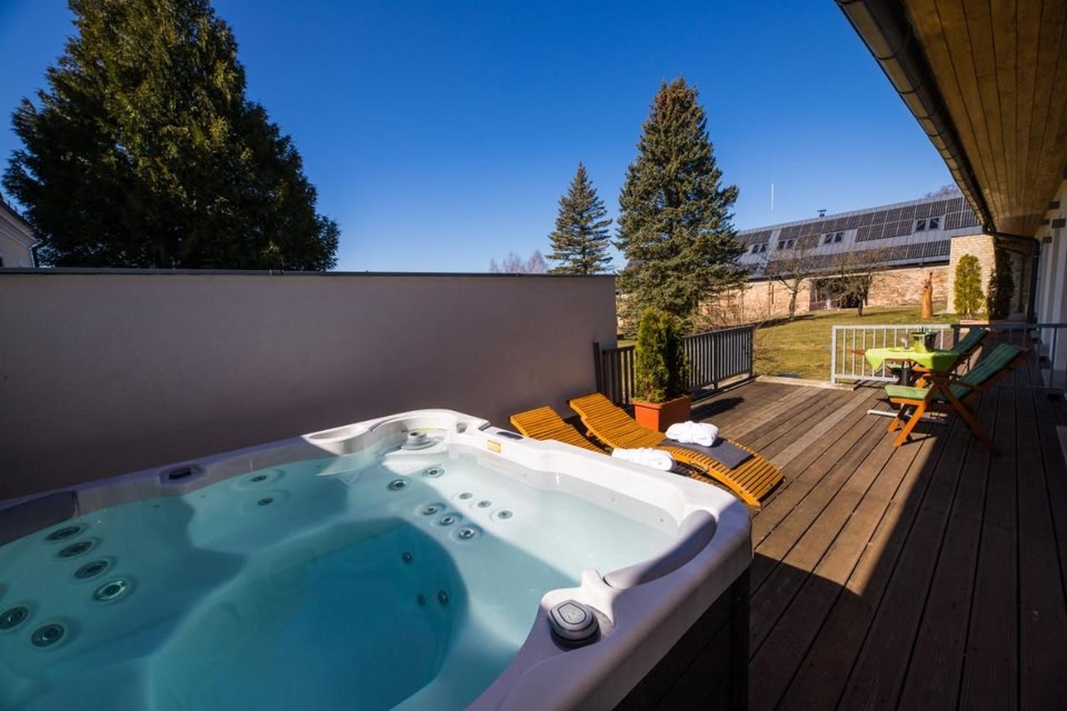Tranquil Retreat with Modern ComfortsSerene Surroundings: Nestled in the Zdarske Vrchy protected area, Resort Líšenský Dvůr offers a peaceful escape surrounded by lush gardens and a picturesque fishing pond.Charming Accommodations: The rooms feature a blend of modern amenities and rustic charm, with wood beams and stunning views of the landscape. Enjoy free Wi-Fi, flat-screen TVs, and spacious living areas in select units.Culinary Delights and Recreation: Indulge in European cuisine made from local ingredients at the on-site restaurant, boasting a cozy fireplace and panoramic countryside views. Unwind on the terrace with barbecue facilities or explore nearby horse riding and historic landmarks.Book your stay now to experience a perfect blend of relaxation and adventure at Resort Líšenský Dvůr!