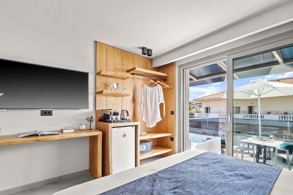 Situated in Pefkohori, Emily's Luxury Suites offers beachfront accommodation 2.6 km from Paralia Glarokabos and offers various facilities, such as a terrace and a bar. The property has sea and garden views, and is a few steps from Pefkohori Beach.