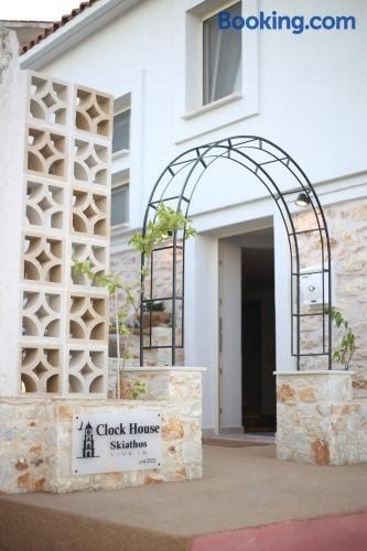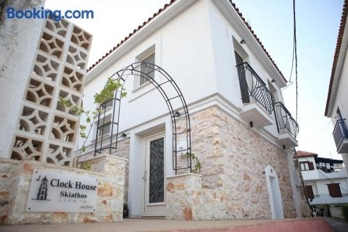 Situated in Skiathos Town, 800 metres from Skiathos Plakes Beach and 100 metres from Papadiamantis' House, Clock House Skiathos features air-conditioned accommodation with a balcony and free WiFi.
