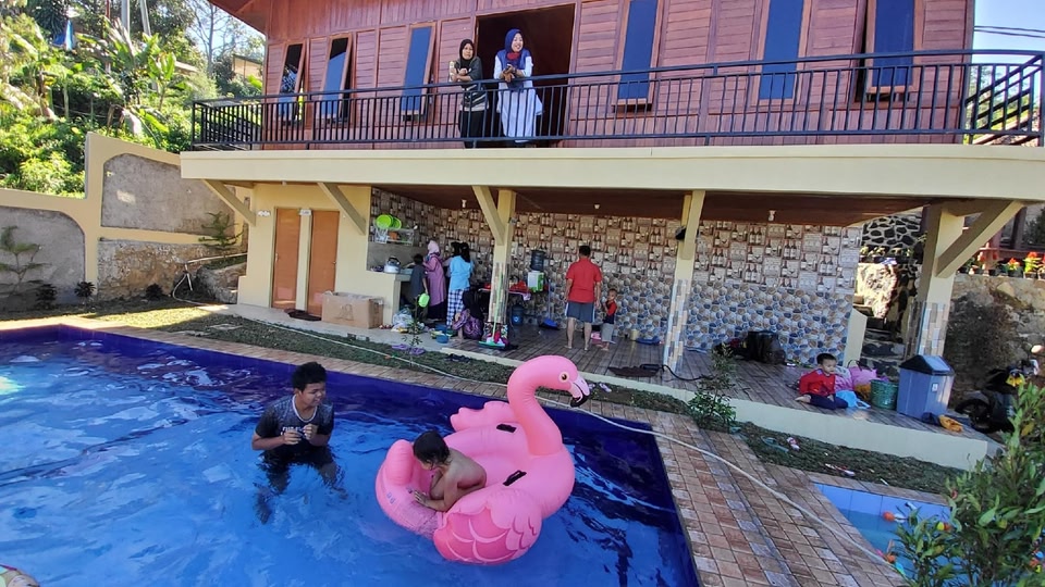 Megamendung is home to this villa. Bogor Presidental Palace and Cipanas Presidential Palace are local landmarks, and the area's natural beauty can be seen at Cilember Waterfalls and Curug Cibogo Waterfall. Taman Safari Indonesia and Taman Wisata Matahari are also worth visiting. Located in Megamendung, this welcoming villa lets you experience it all. With convenient onsite parking, you'll be ready to make the 26-minute drive to Taman Safari Indonesia or the 20-minute drive to Dhamma Java Vipassana Meditation Centre. After you return, you can unwind by the outdoor pool or sip a drink on the terrace; you may also like the kids pool. For a change of scenery, come inside and try your hand at table tennis, or enjoy the free WiFi and LCD TV. The kitchenette is equipped with a refrigerator. Bathroom amenities include a rainfall showerhead. And because there's a washing machine, you can go a bit lighter on your packing. Other amenities include bed sheets, a desk, and daily housekeeping.