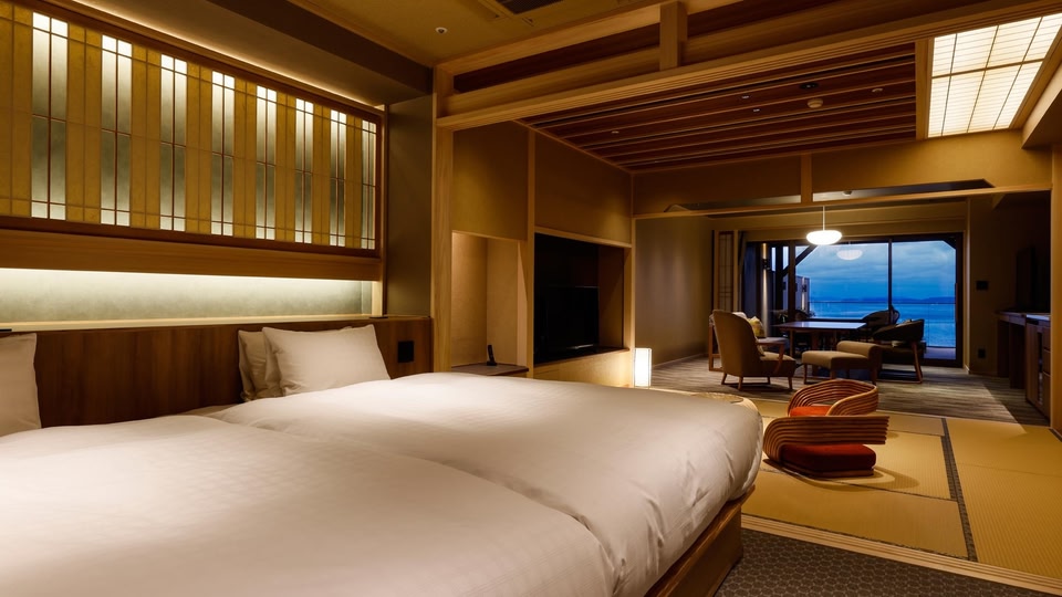 Hotel New Awaji offers spacious rooms with beautiful sea views, some with a private outdoor bath. It features public hot spring baths, an outdoor sea-side pool and 5 dining options.