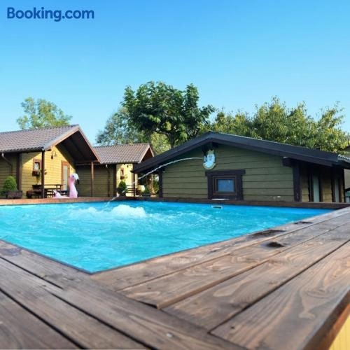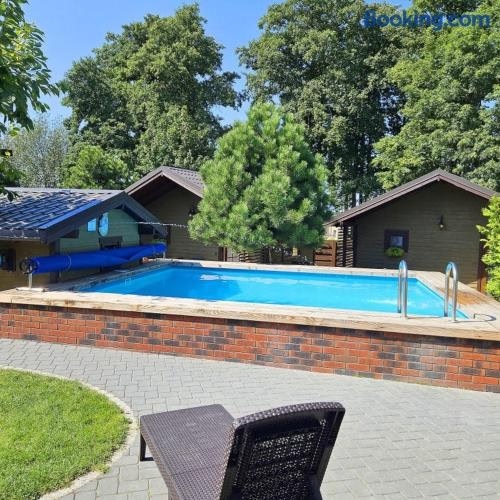 Set in Palanga, JŪROS TROBELĖ keturvietis namukas Kunigiškėse provides a private pool. This property offers access to a terrace, free private parking and free WiFi. The property is non-smoking and is located 1.7 km from Vanagupe Beach.