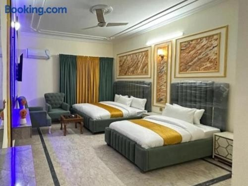 Boasting a restaurant and a bar, Hotel Sky line Gulshan is set in Karachi. With a garden, the 3-star hotel has air-conditioned rooms with free WiFi, each with a private bathroom.