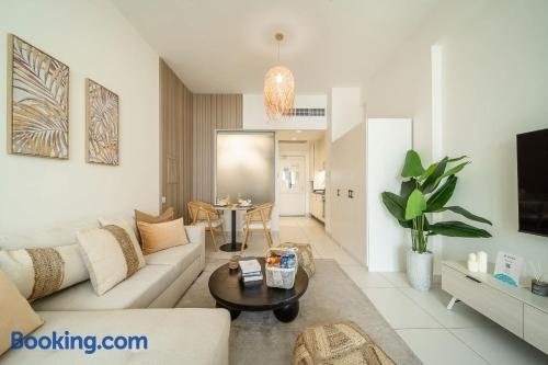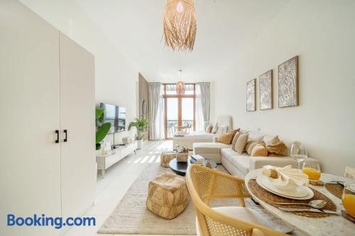 Airstay - Cozy Studio - Sea Views - Palm Jumeirah - Monthly Offer Available is set in the Palm Jumeirah district of Dubai, 80 metres from Frond P Beach, 6.6 km from Aquaventure Waterpark and 8.2 km from The Walk at JBR. The property is around 8.