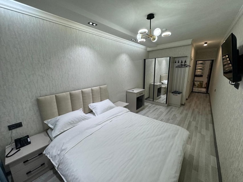 Luxurious Garden OasisEscape to Toshkent Hotel, a tranquil retreat in Andijan offering a lush garden and charming terrace for relaxation. Indulge in exquisite dining at the on-site restaurant and unwind with a refreshing drink at the bar.Comfort and ConvenienceExperience top-notch hospitality with 24-hour room service and a welcoming front desk at your disposal. Stay connected with complimentary WiFi throughout the property and enjoy the convenience of family rooms for larger groups.Modern AmenitiesEach well-appointed room features a flat-screen TV, kettle, and cozy bed linens. Select rooms even boast a convenient kitchenette with a fridge and microwave, ensuring a comfortable stay. Don't miss the chance to experience the ultimate in comfort at Toshkent Hotel.