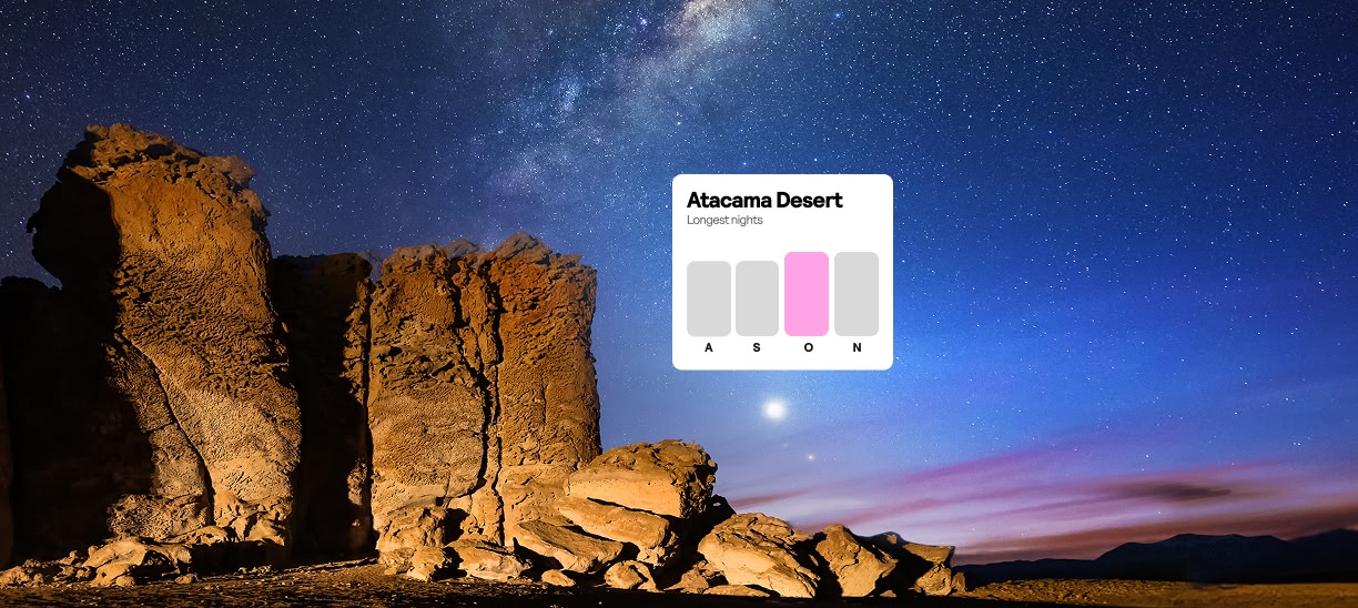 At Skyscanner, we’ve mastered the art of data analysis. We’ve sifted through historical weather data from destinations worldwide to pinpoint the best times for the activities you love. Dreaming of stargazing? We’ll guide you to locations with clear skies and long nights. Want to learn more about history? Our recommendations focus on clear skies and warm weather, ideal conditions for sightseeing.